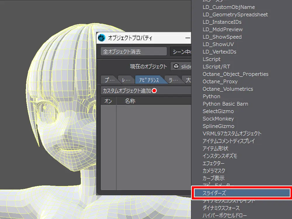 今回はモーフを管理する機能として、スライダーズを使ってみました