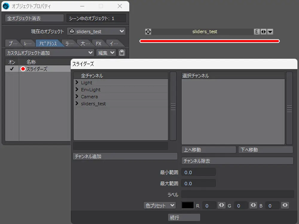 スライダーズに表示したいモーフを選択して、「チャンネル追加」で追加していきます