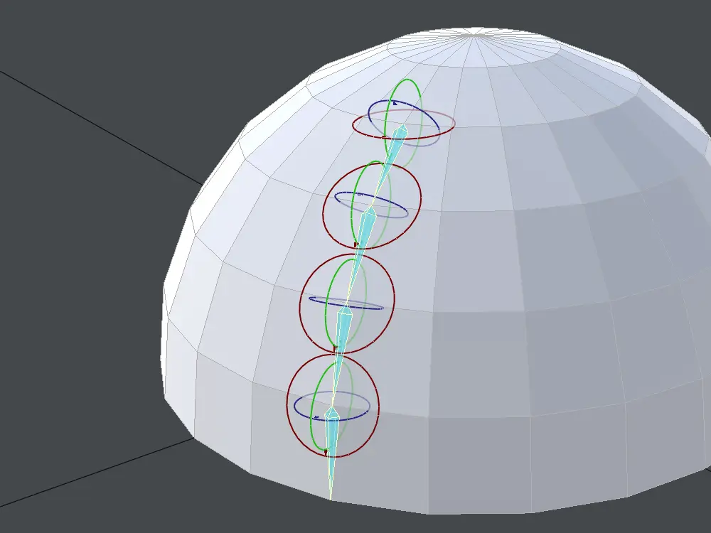実際に曲面に沿わせて、ボーンを設置してみます