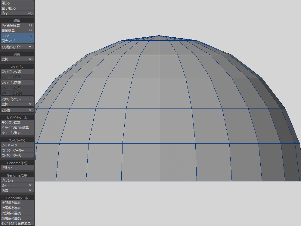 線ポリゴンが選択されている状態で、「スケルゴン変換」を実行します