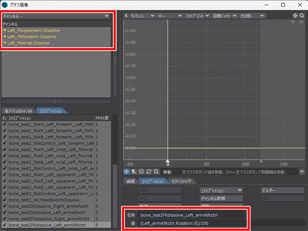 移動直後だとチャンネルが大量に表示されますが、Rotation.H をクリックして単一にします