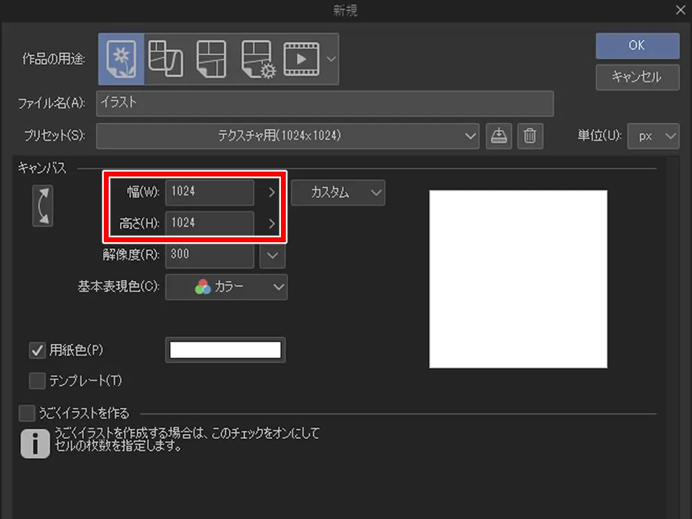 ペイントソフトを使って、テクスチャー用の色画像を作っておきます