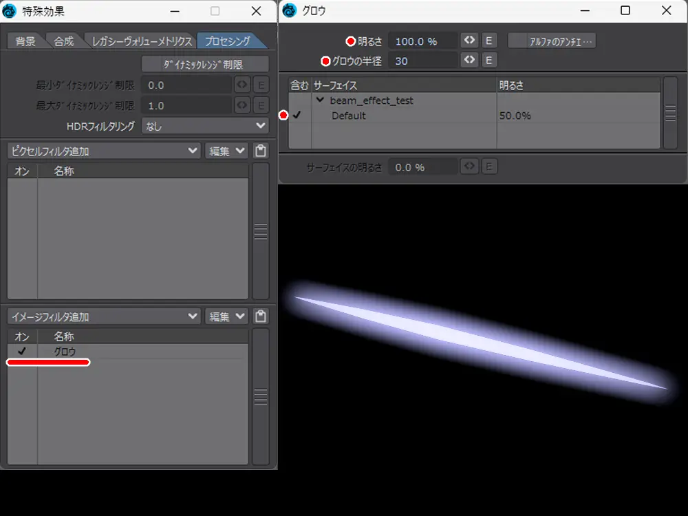 特殊効果としてグロウを適用