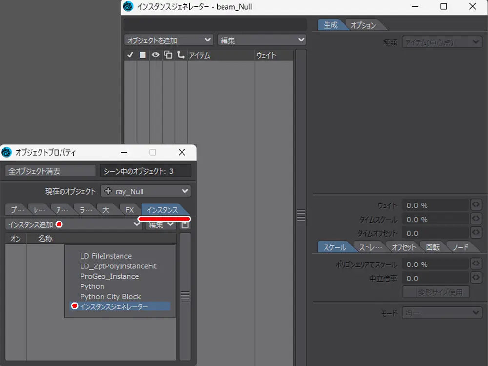 同時に同じプロパティ内にあるインスタンスから、「インスタンスジェネレーター」を追加