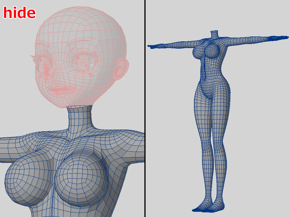 - UV 展開に関係ない部位は非表示にする