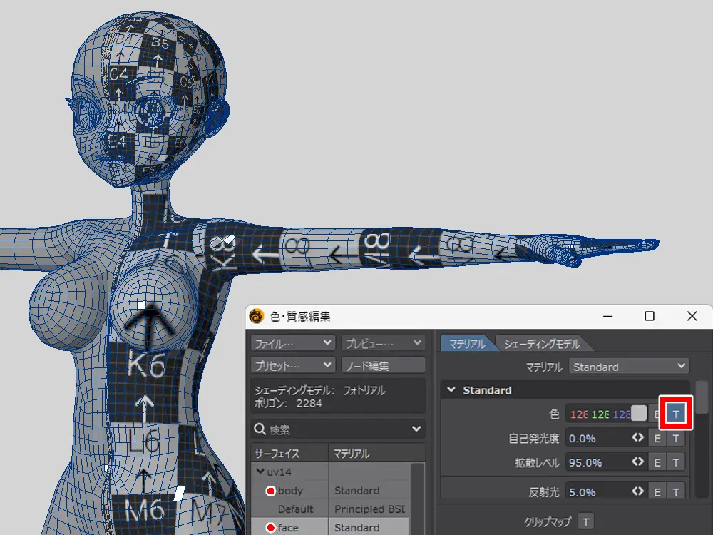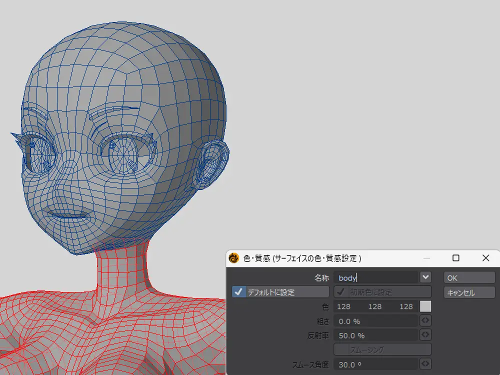 体と顔、それぞれ選択してサーフェイスを設定します