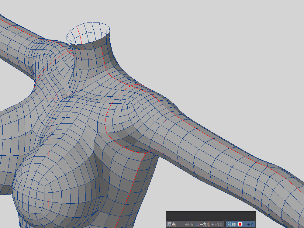 なので、対称モードをオンにしてひたすらエッジを選択します