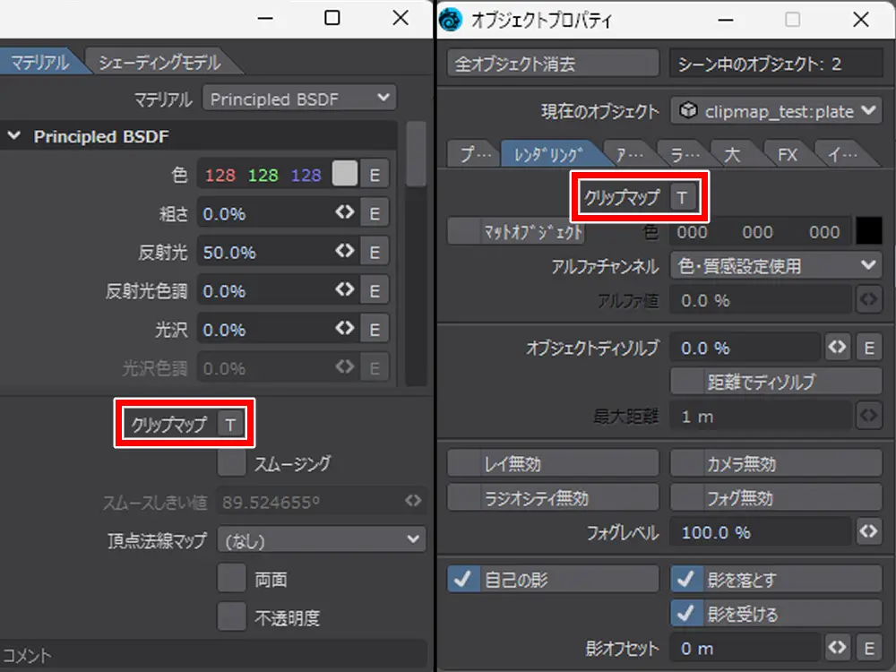 作業中に気付いたのですが、クリップマップの項目が二か所あります