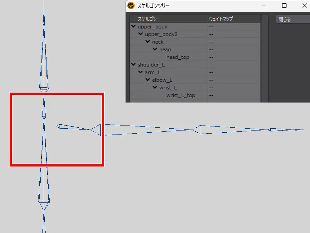 ※以降、離れた状態で親子付けされているボーンを浮遊ボーンと呼びます