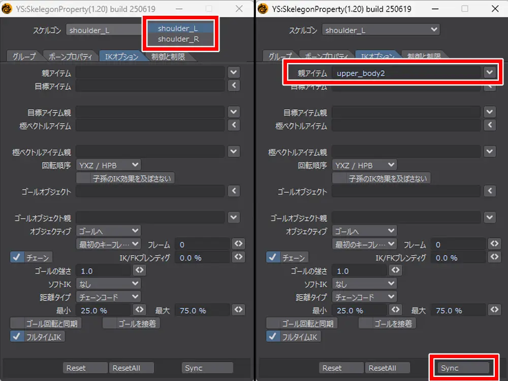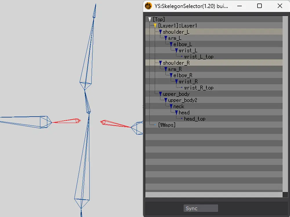 逆にボーンを選択した後に Sync を実行すると、ツール側に反映されます