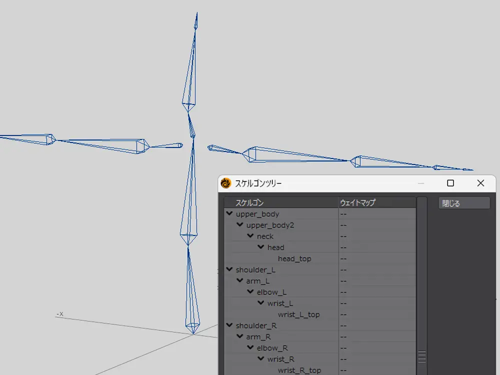 ※以降、離れた状態で親子付けされているボーンを浮遊ボーンと呼びます