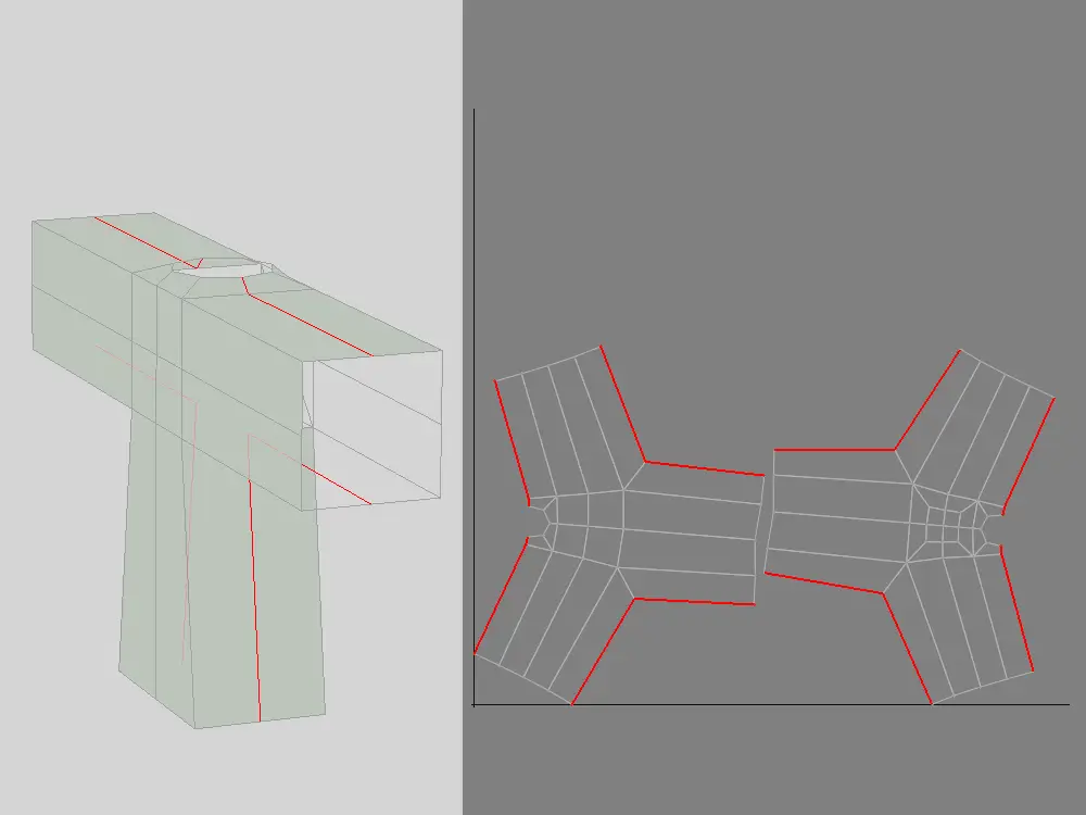 もし、UV マップの鏡面コピー中にどれかしらの情報が失われたら、失敗とみなします
