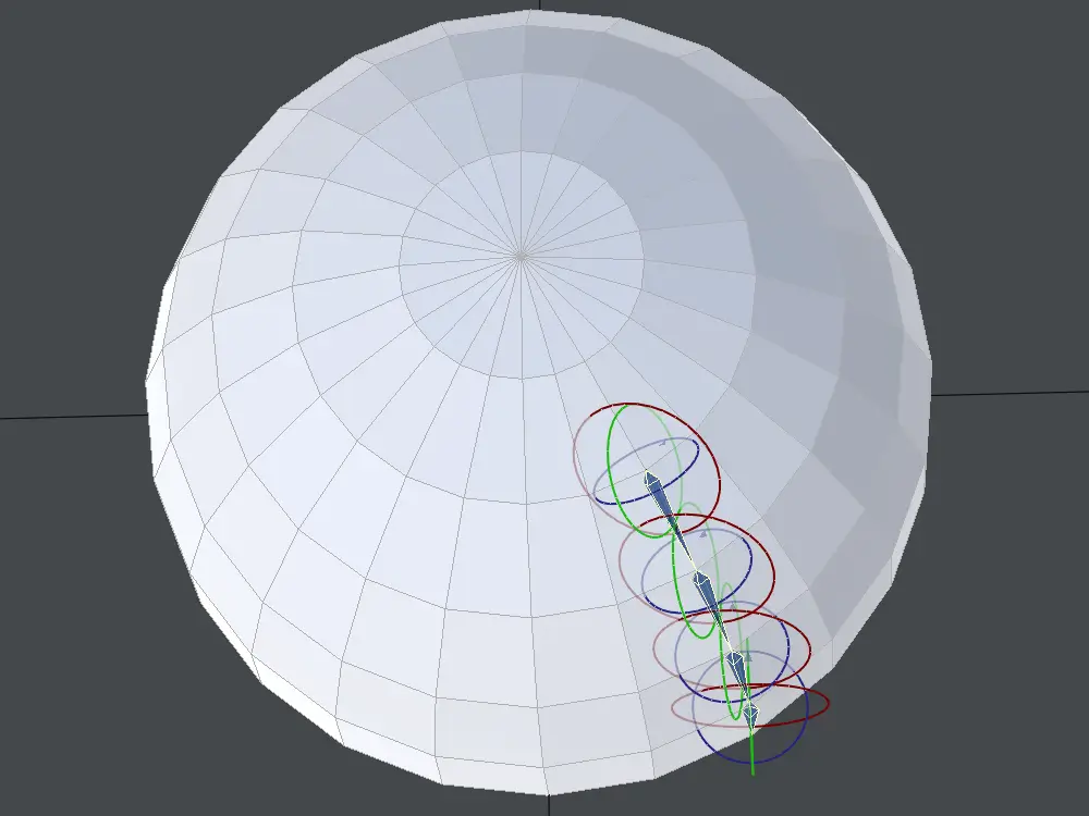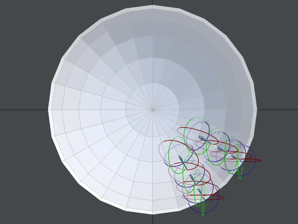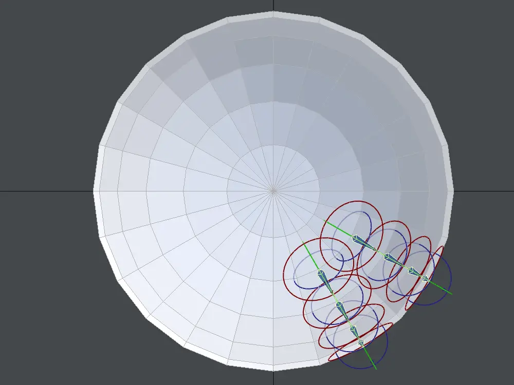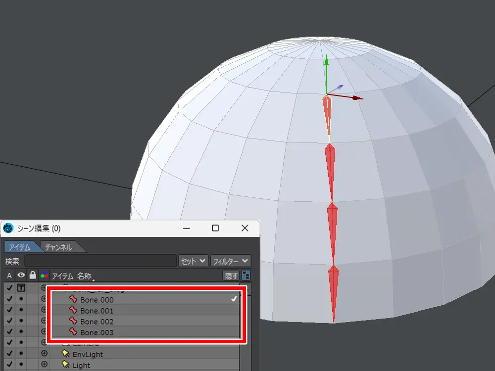 実際に曲面に沿わせて、ボーンを設置してみます