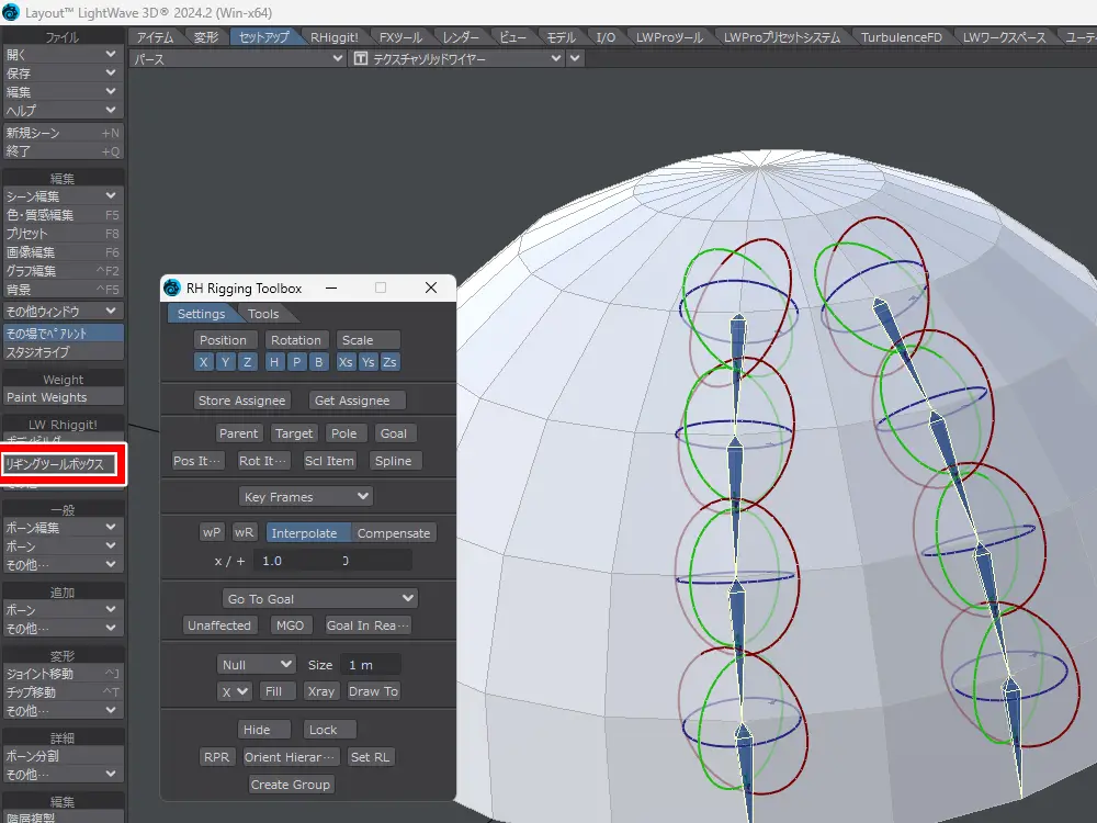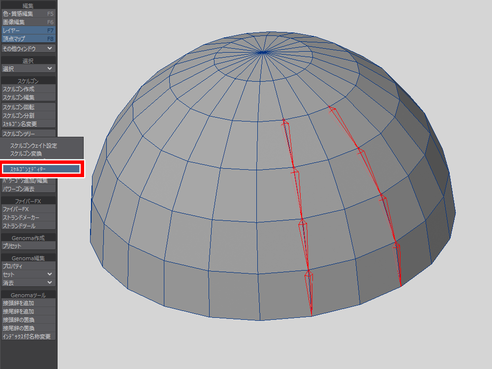 モデラーのスケルゴン変換は、曲面に沿ってボーンを入れたいときに使えそうです