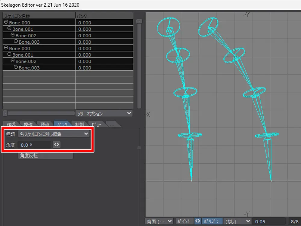 Skelegon Editor を使った場合は、Skelegon Reader じゃないと設定したバンクが反映されないことに注意