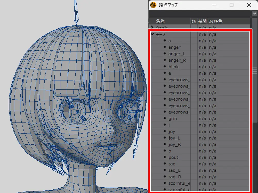 頂点マップにモーフがあることを確認して、レイアウトにポイっと投げ込みます