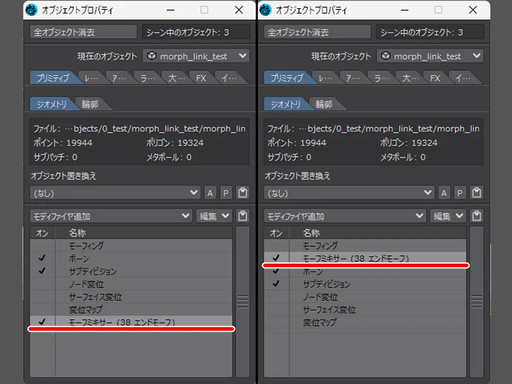 今回はモーフリンクを使って、モーフをコントロールしてみました