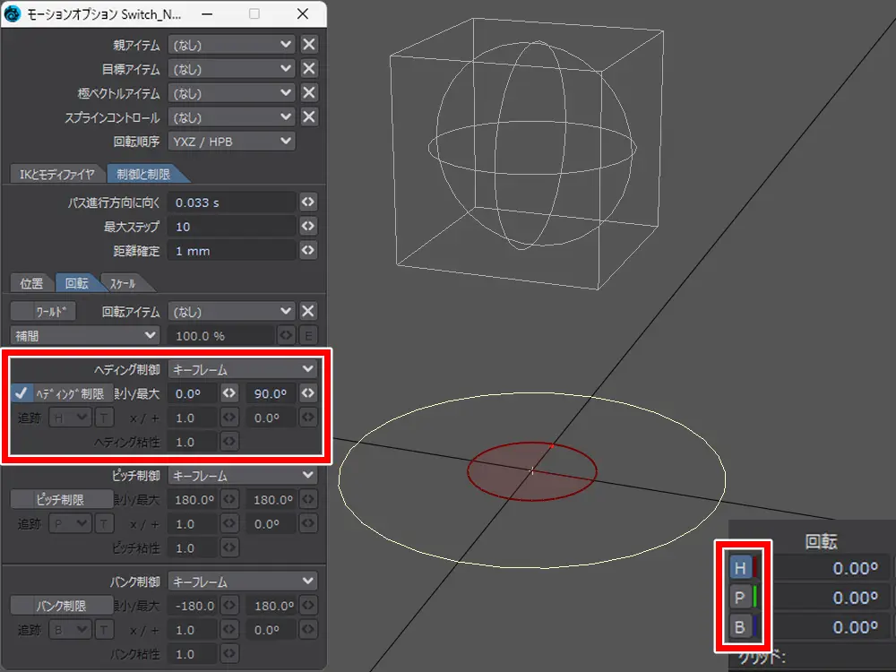 モーションオプションを開いて、今回はヘディング制限にチェック