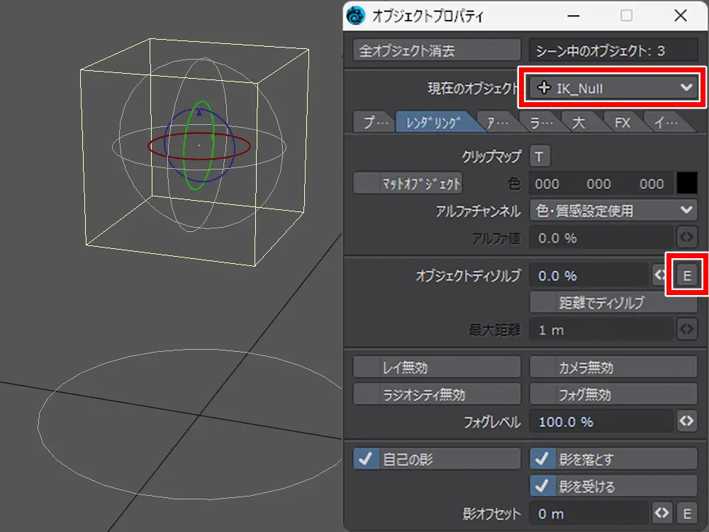 IK_Null と FK_Null のどちらかを選択して、 オブジェクトプロパティを開きます