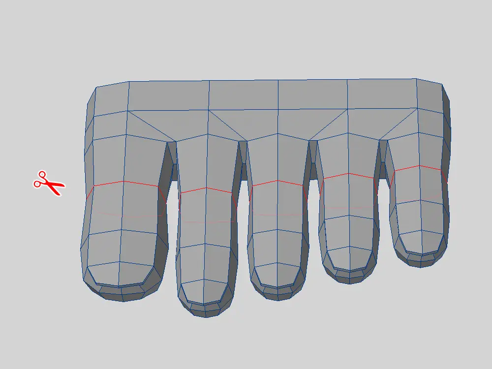 最初に親指用のカットを入れて、残りの指用のカットを追加します