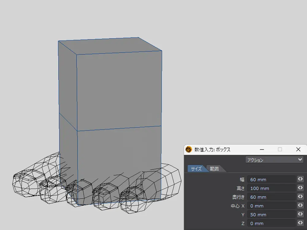 まずは指を作るために単純なボックスを用意