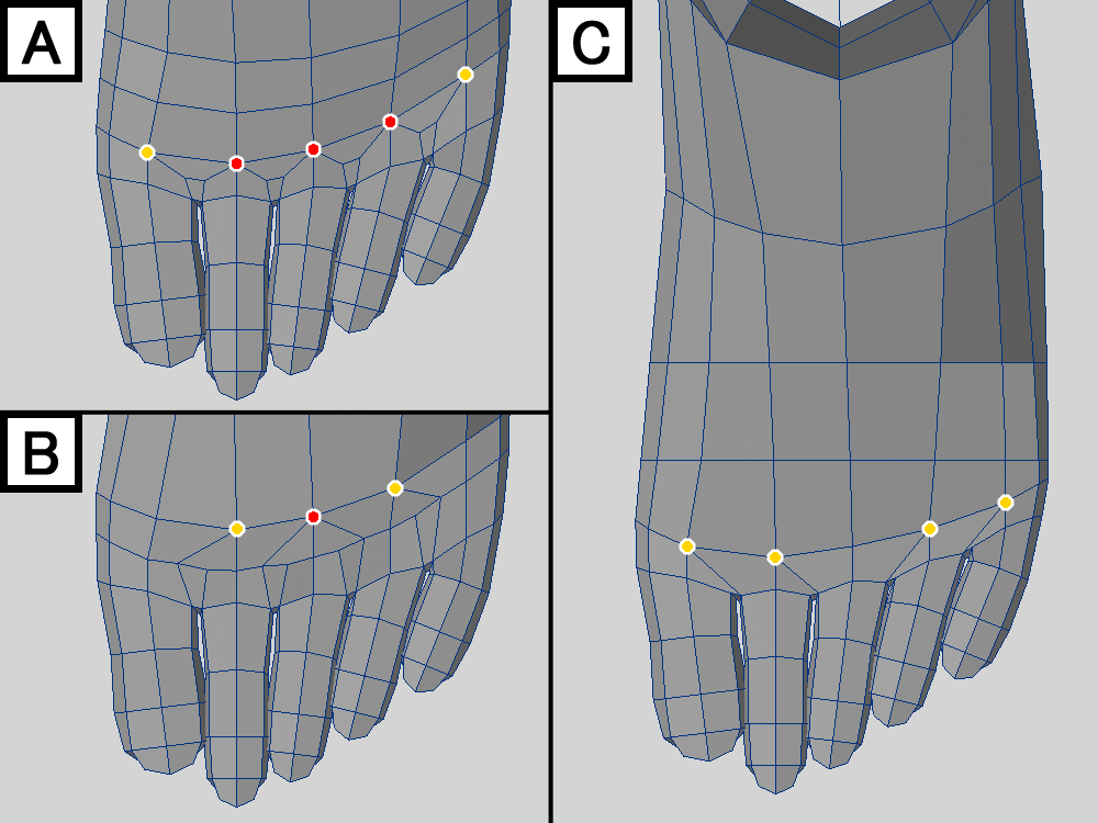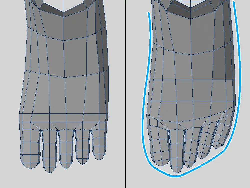 これは過去に作った足のポリゴンの流れ