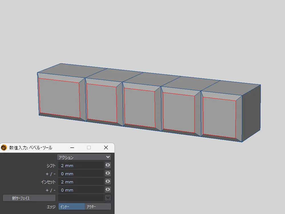 ベベルするのは、後の細分化で八角形の面を出すためです