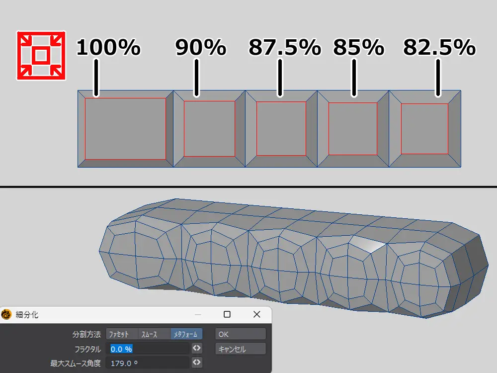 面を小さくしたら「細分化」を起動して、「メタフォーム」で実行