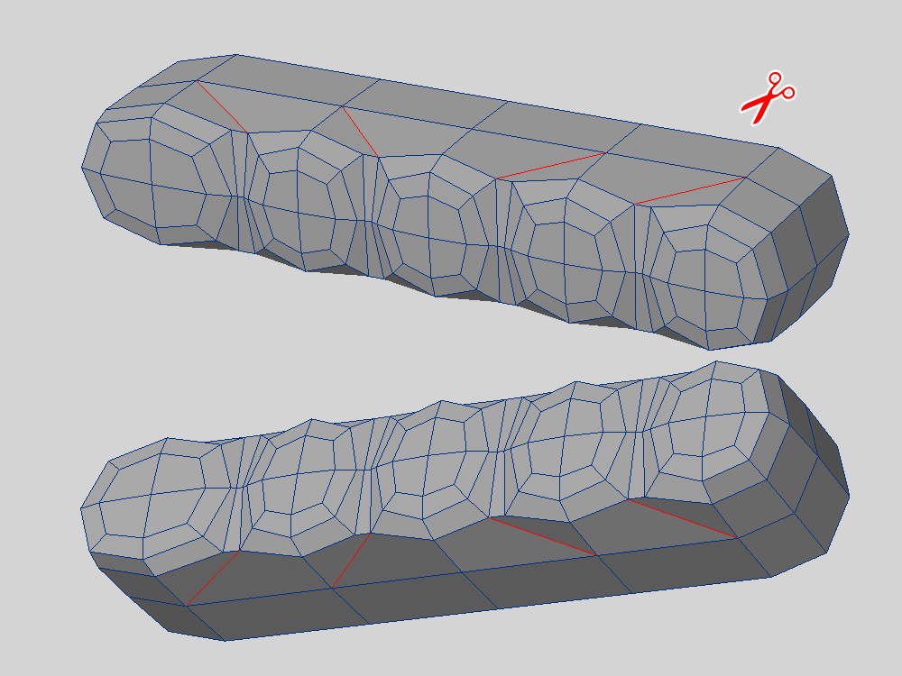 まずはカットの追加と削除をして、ポリゴンの流れを変更