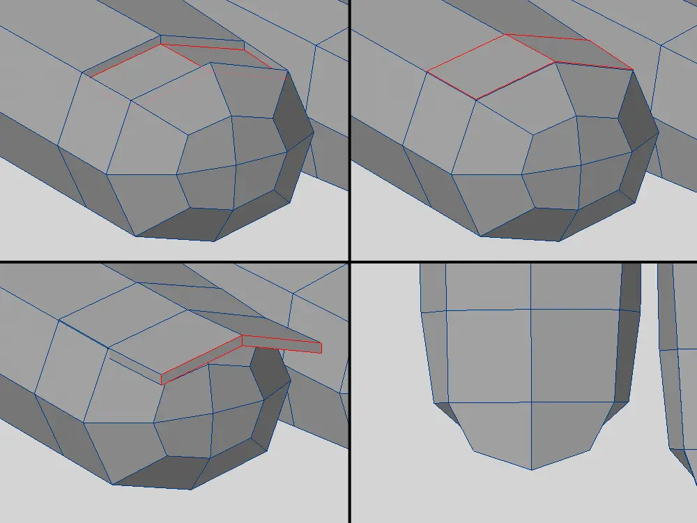 ハの字型にカットを入れて、五角ポリゴンを削除