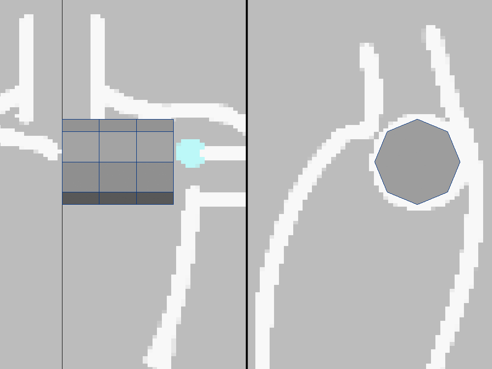 八角形なら必要十分なポリゴンで形も作れたので、手足の最少角数は八角形としました