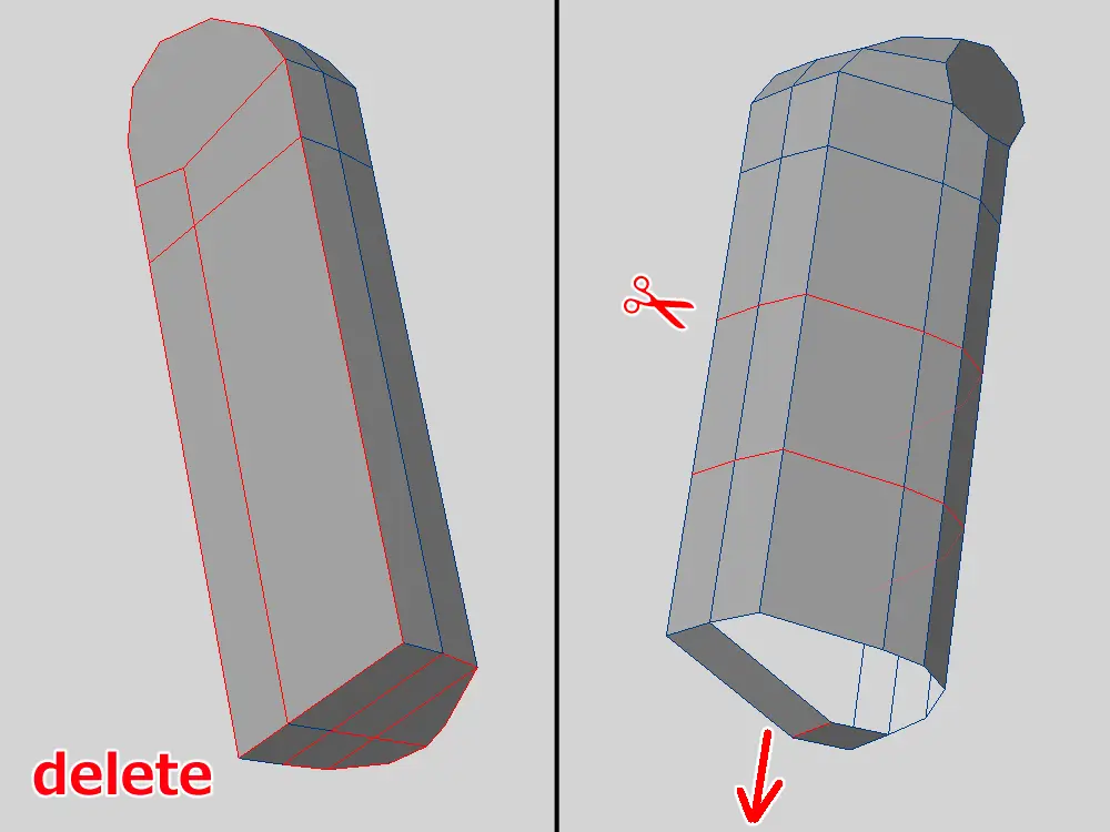 両サイドの面を消して、股付近をぎゅっと狭めればできる