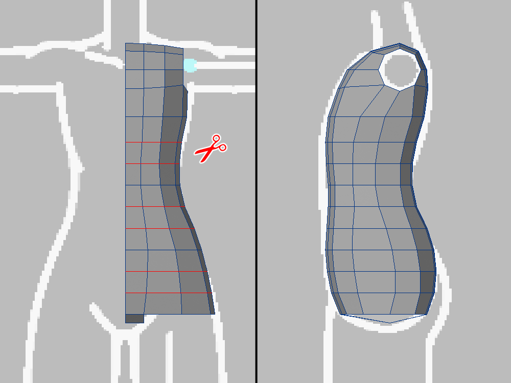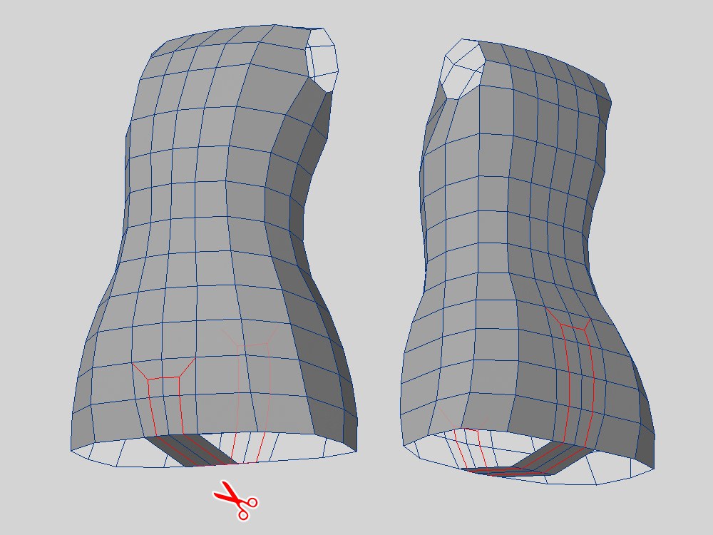 尻の形が作れないと思ったので、股下にカットを追加しました