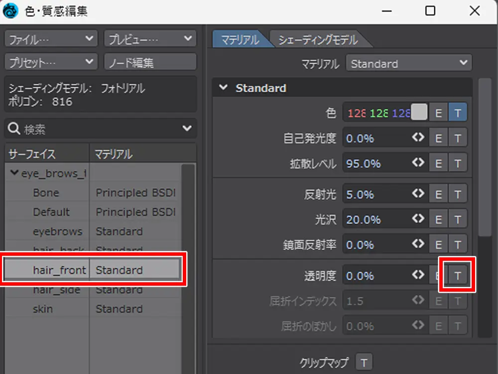 もう一度、前髪の透明度のテクスチャ編集をオープン