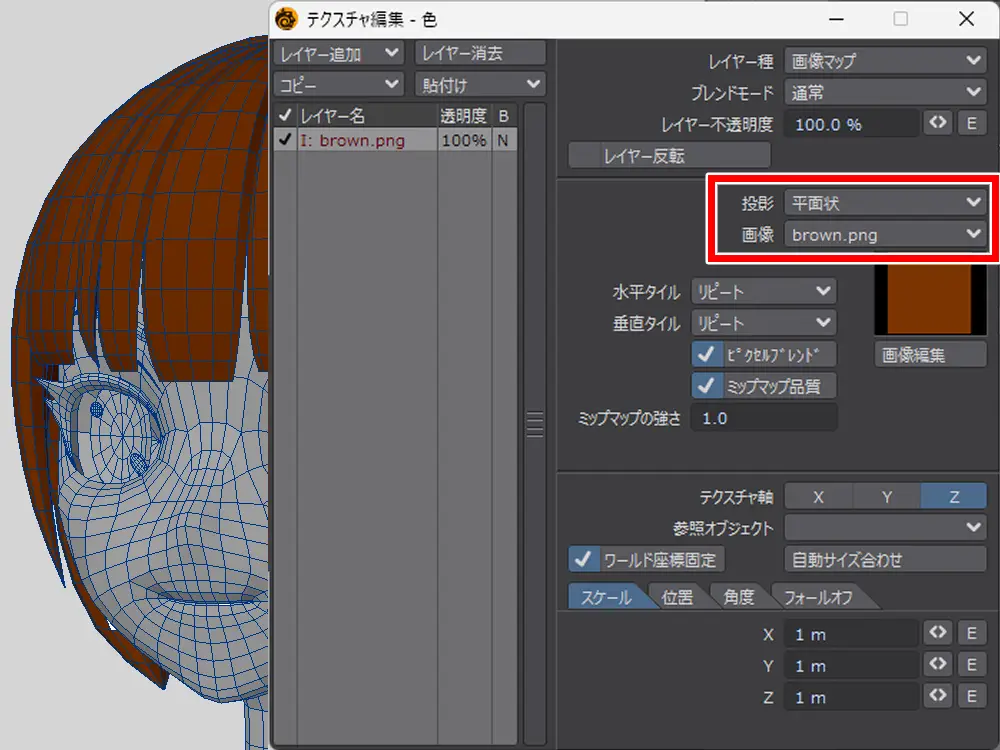 テクスチャ編集の画面が開くので、先ほど作った色画像を設定します