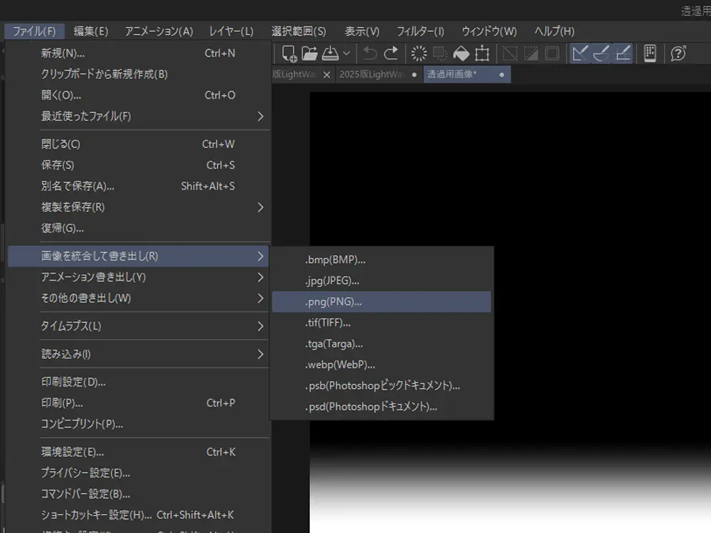 保存形式は PNG としました