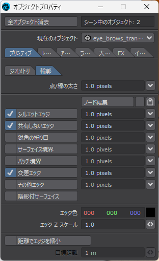 エッジを出すのは難しい印象でしたが、LightWave はチェックを入れるだけでできます
