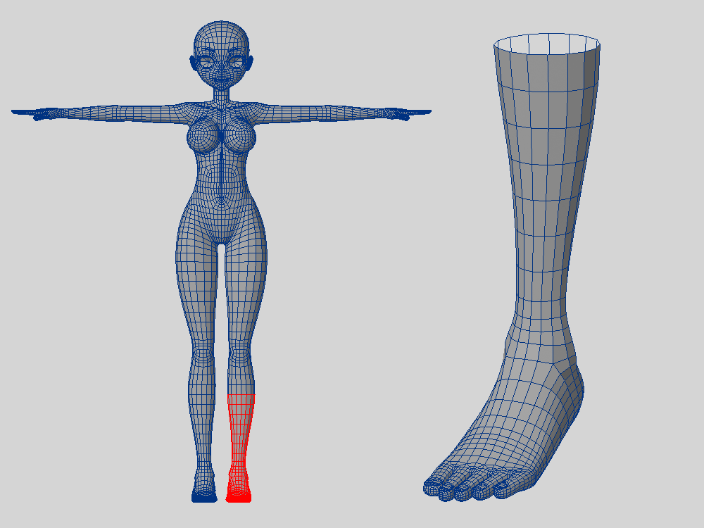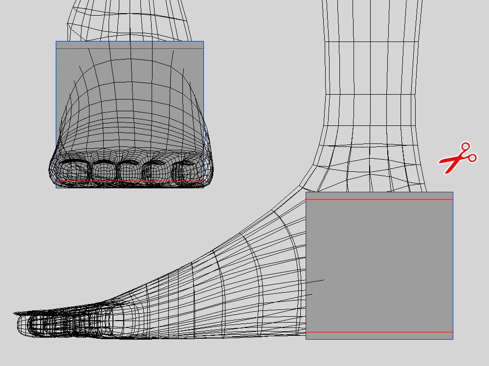 足の甲と周辺にカットを追加