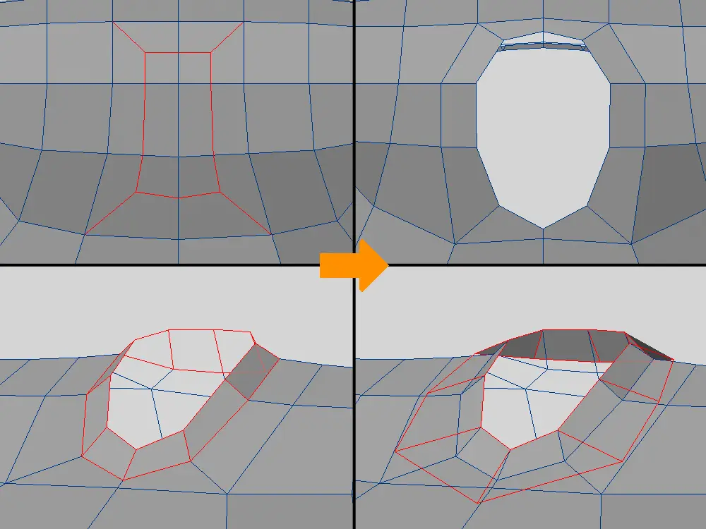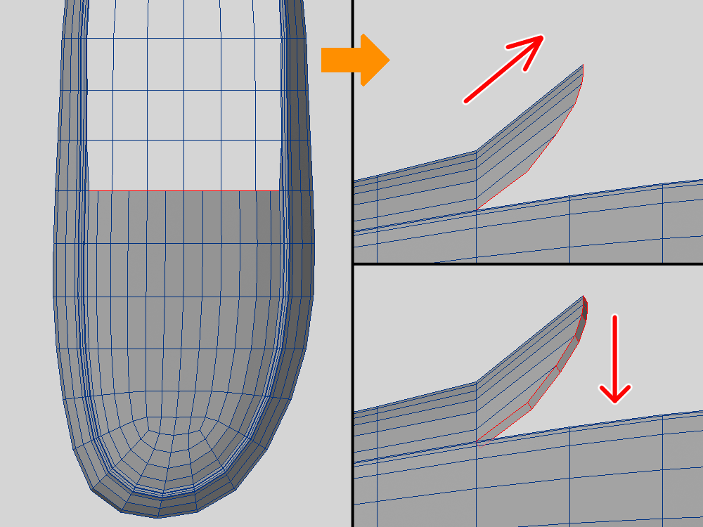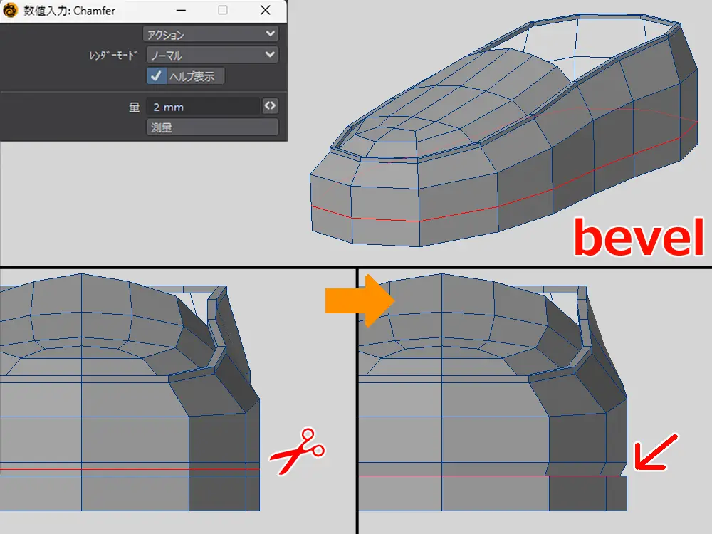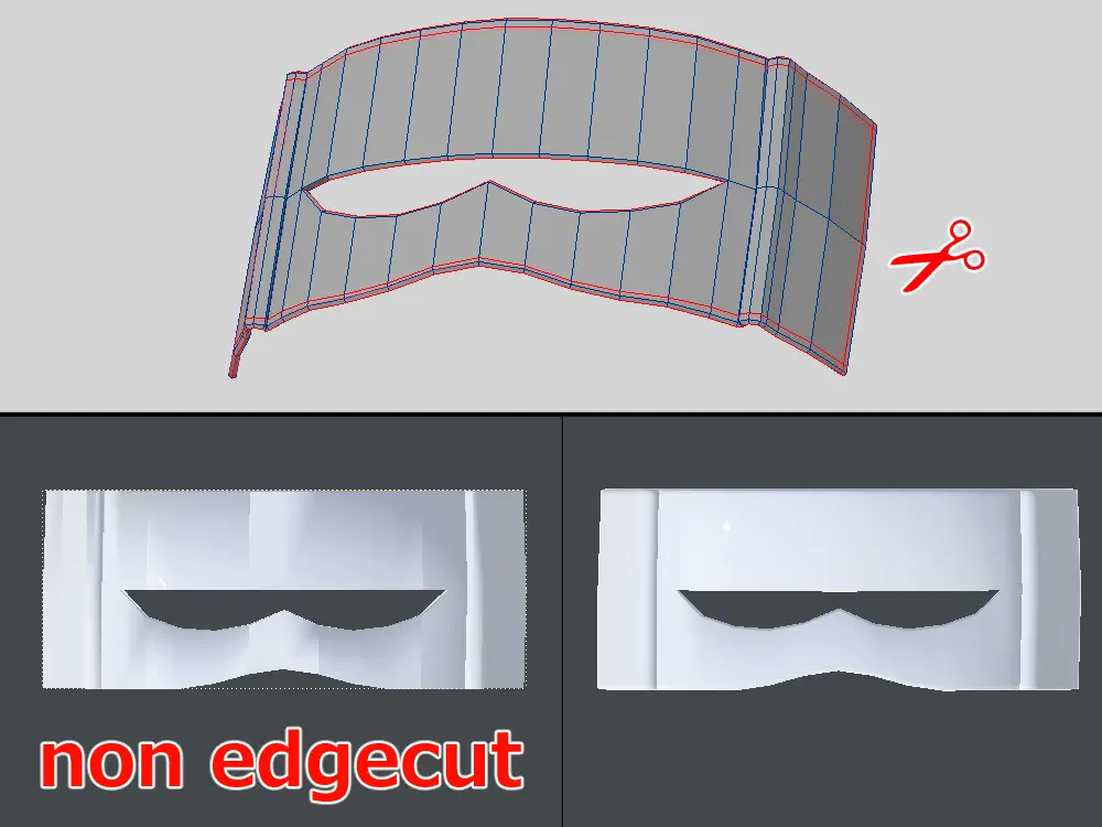 ふちはカットを入れたエッジを少し下げて、面を平面に