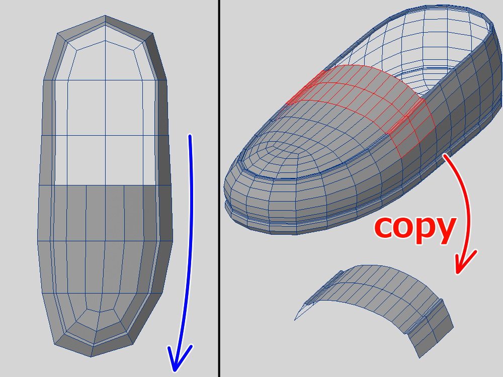 素体の形状に近いものを作る場合は、素体から複製するようにします