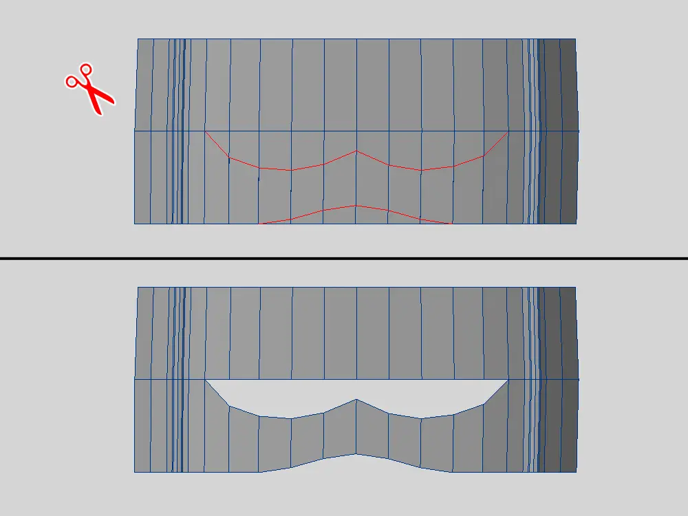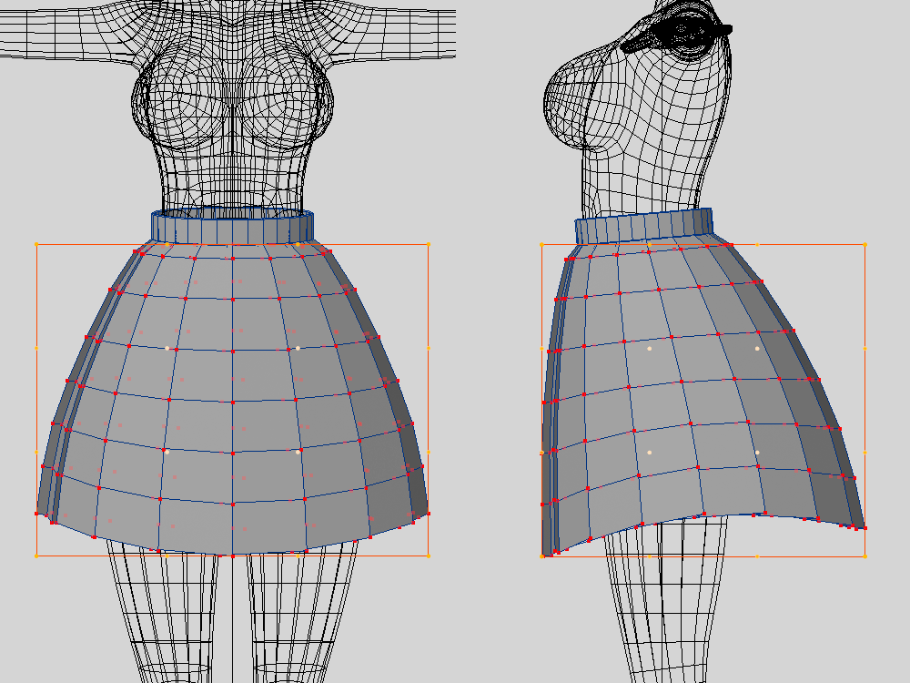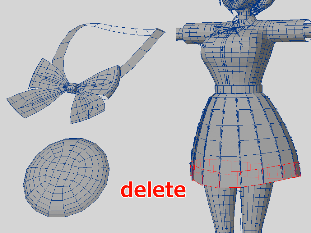 スカートの下のポリゴンは動かさないので、削除しちゃいます