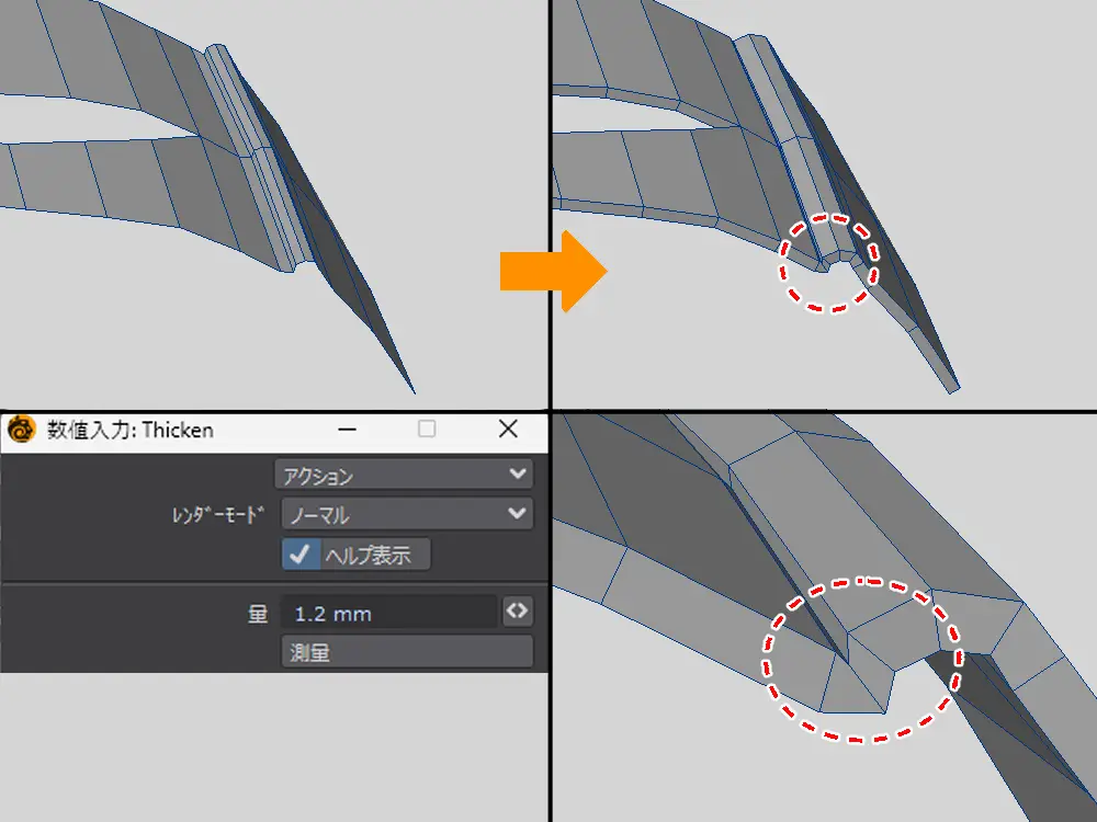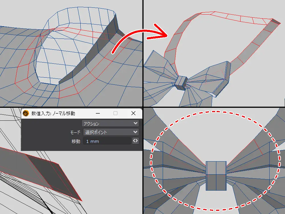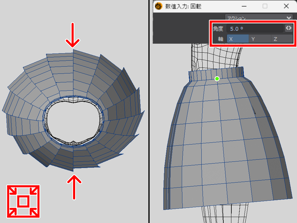 | 素体から複製して作る | 素体が貫通しにくい ぴっちり系が作りやすい | 作れる服が限定される 分割の流れを変えることがある |