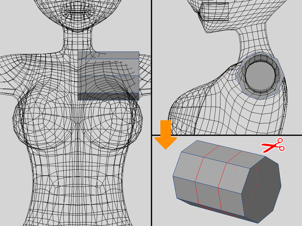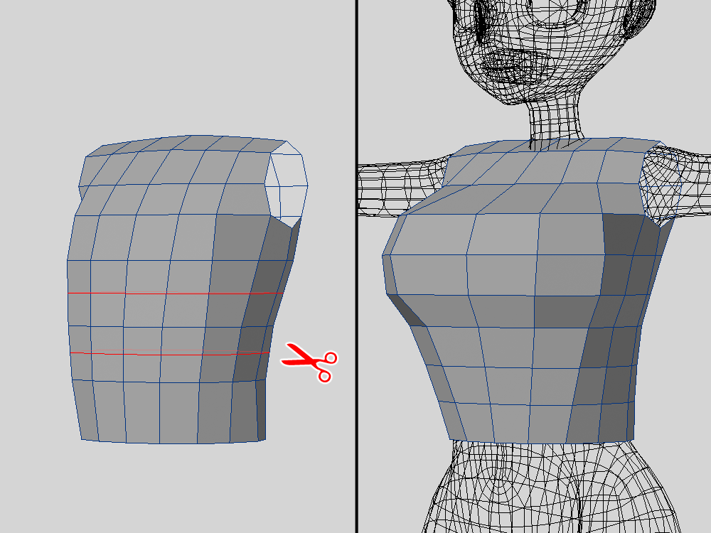 流石にポリゴンが少ないので、カットを追加