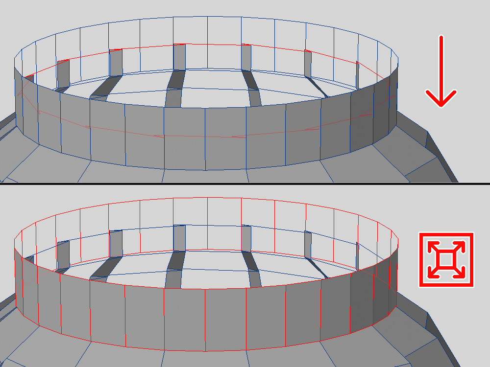 上下面も少し曲面が付いた状態になるので、ポイントを水平に整列