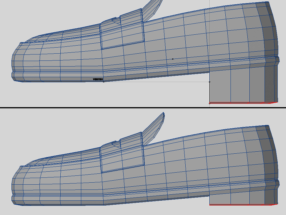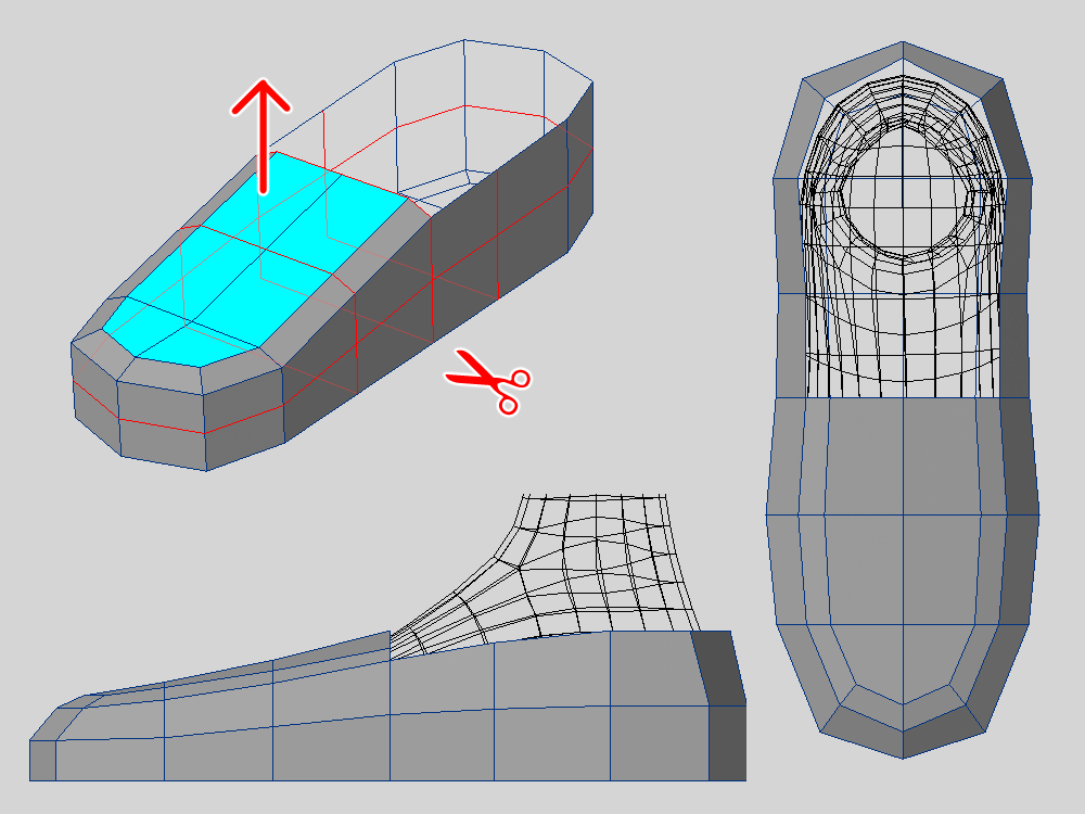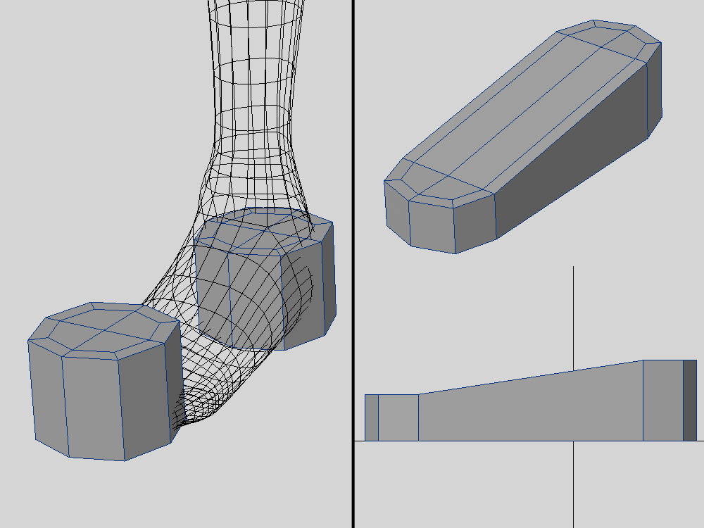 かかとにボックスを配置して、上下にエッジ処理みたいなカットをいれます