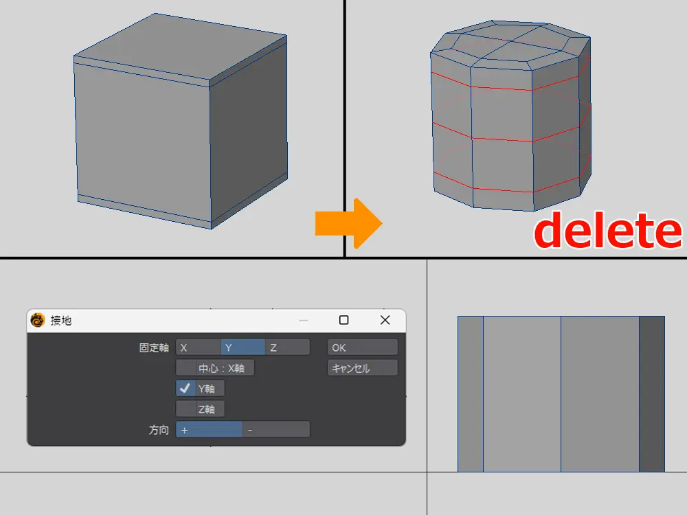細分化と不要ポリゴンの削除