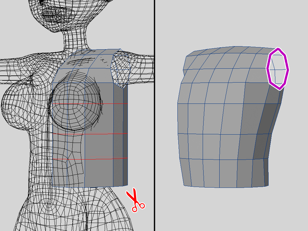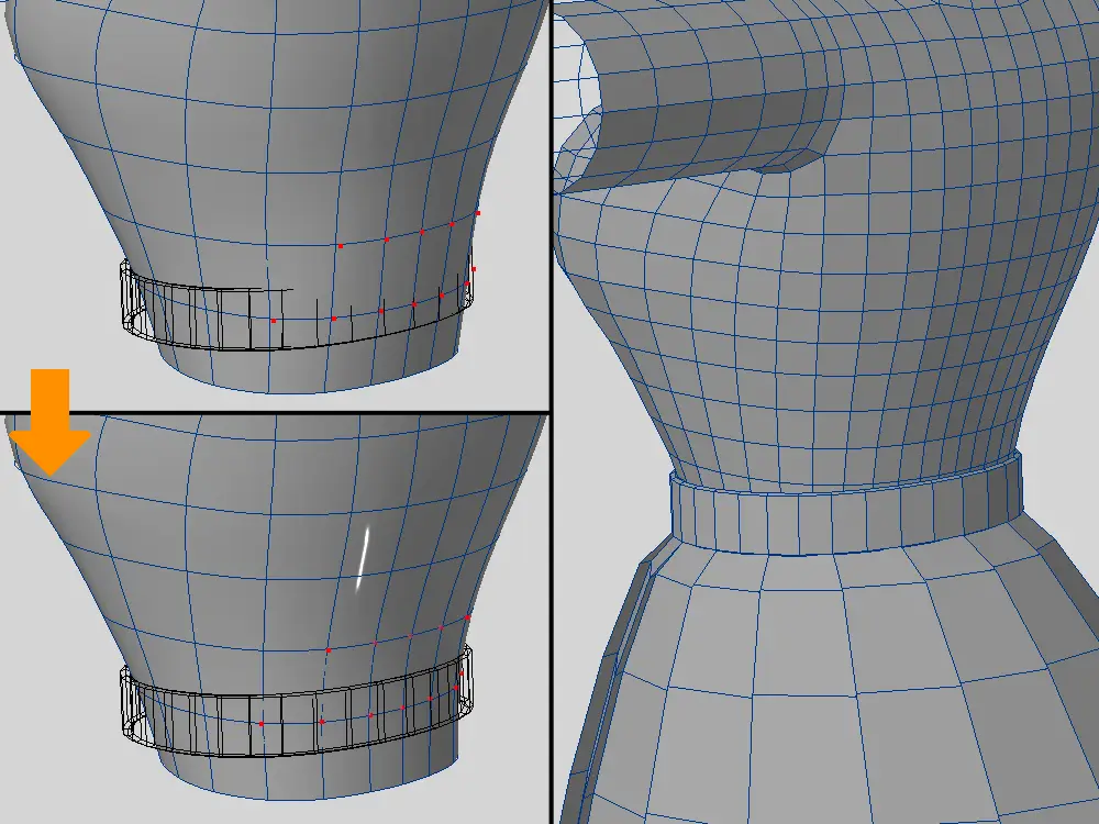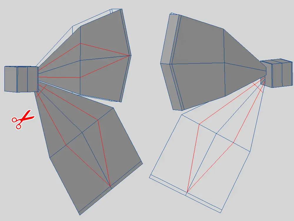 | 素体から複製して作る | 素体が貫通しにくい ぴっちり系が作りやすい | 作れる服が限定される 分割の流れを変えることがある |