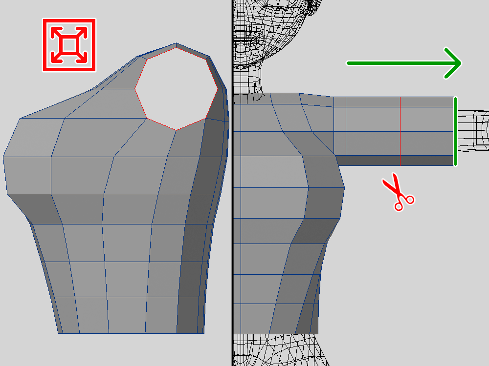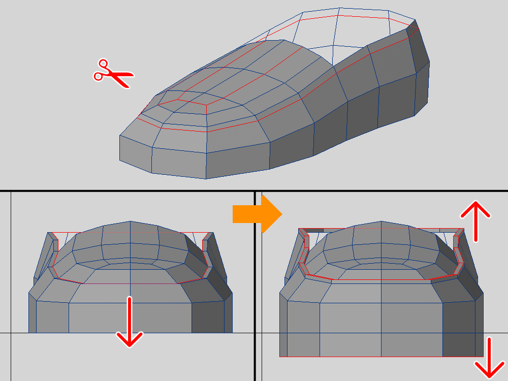 流石にポリゴンが少ないので、カットを追加