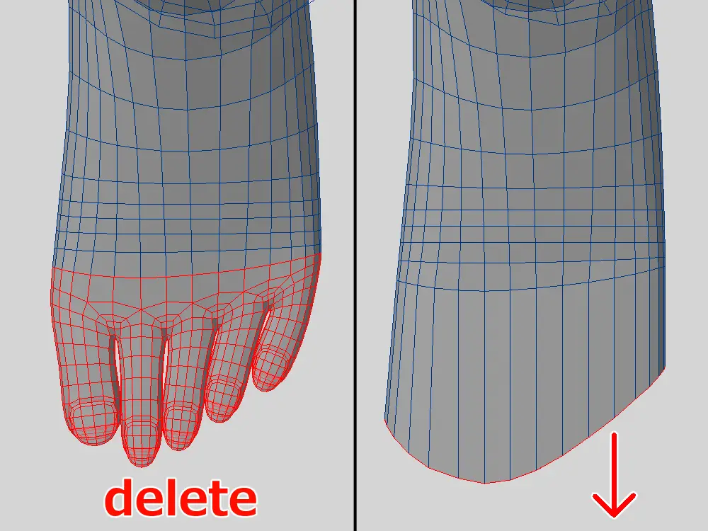 複製したパーツの指部分を削除