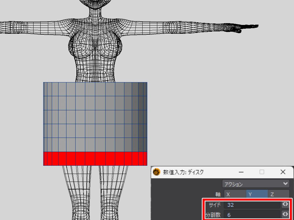 スカートの下のポリゴンは動かさないので、削除しちゃいます